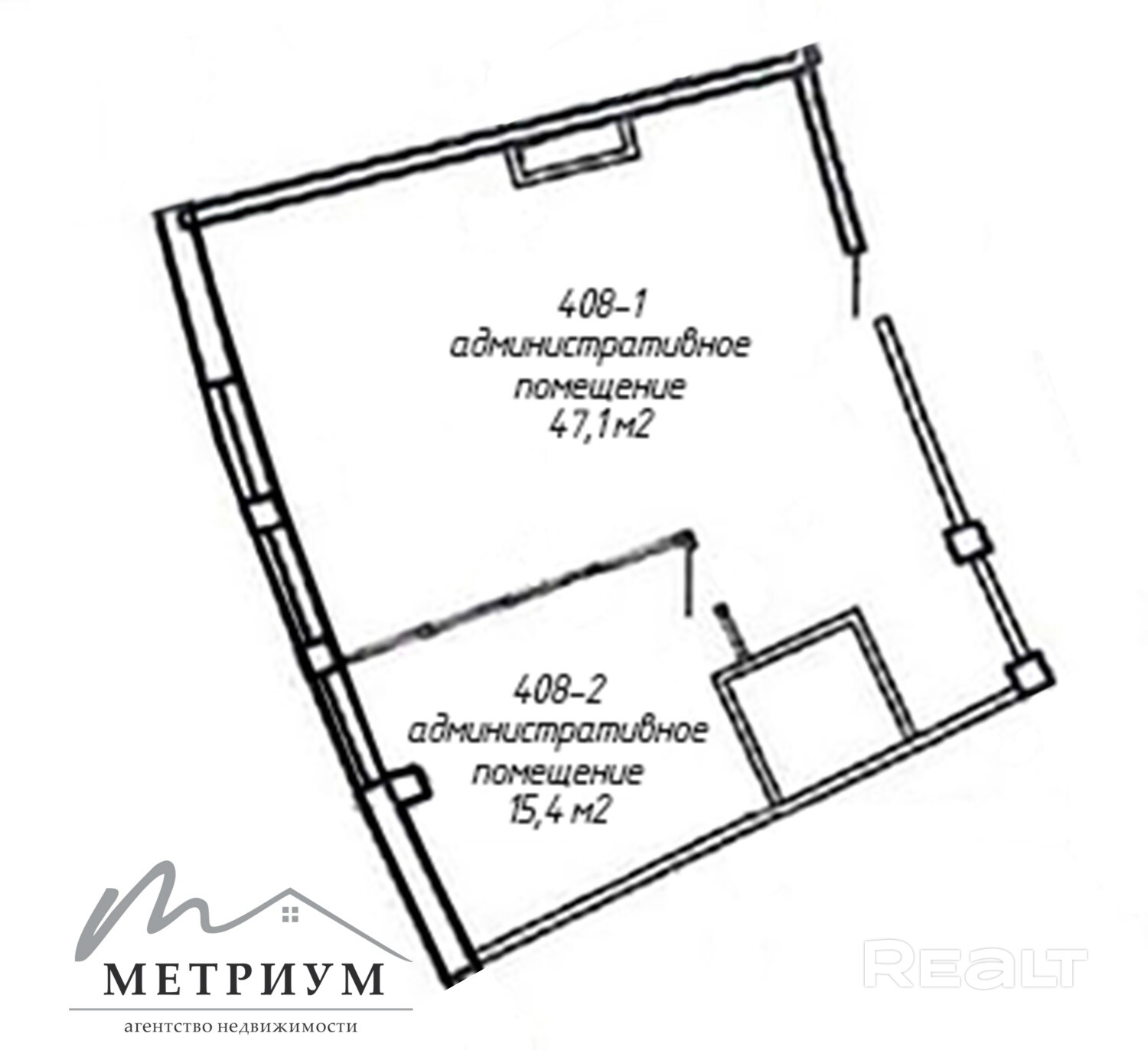 · Состав: кабинет 47,1 кв.м. и кабинет 15,4 кв.м.