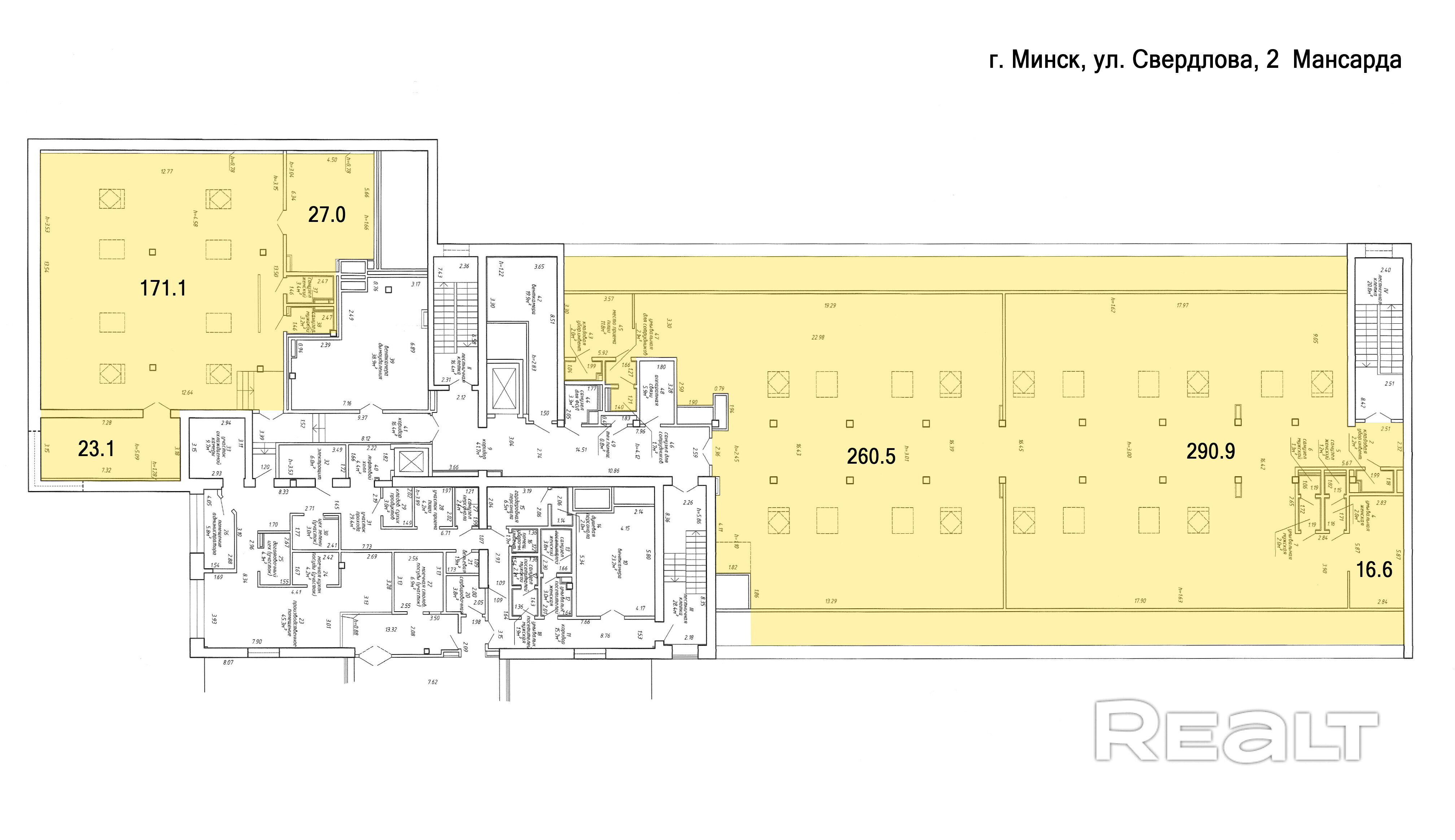 Аренда помещений от 230 до 600 м.кв. на мансардном этаже в центре города и в 4 минутах от ст.м. "Площадь Ленина".