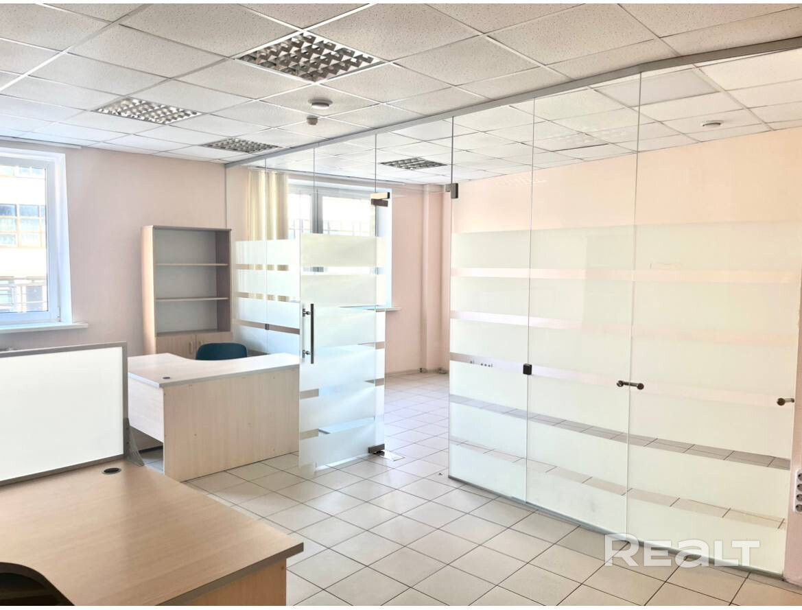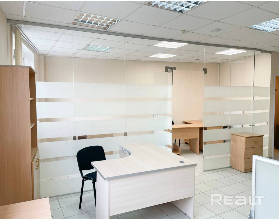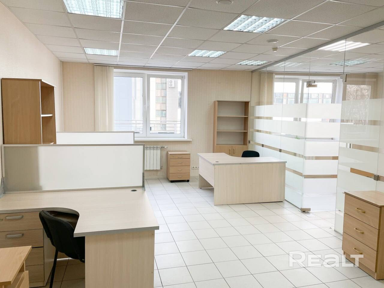 Офис после обновлен. ремонта, частично с мебелью. Разделен на 2 помещения стеклянной стационарной перегородкой. Удобно расположен на 2-м этаже 16-этажного здания БЦ, позволяя экономить время, потраченное на ожидания лифтов. В здании БЦ есть банк, пиццерия, кафе, множество организаций различных видов деятельности. Инфраструктура района развита. Транспортное сообщение удобное (10 мин от ст.м Я Коласа или от ст.м. Московская. Высокоскоростной интернет (оптоволокно). Приточно-вытяжная вентиляция.