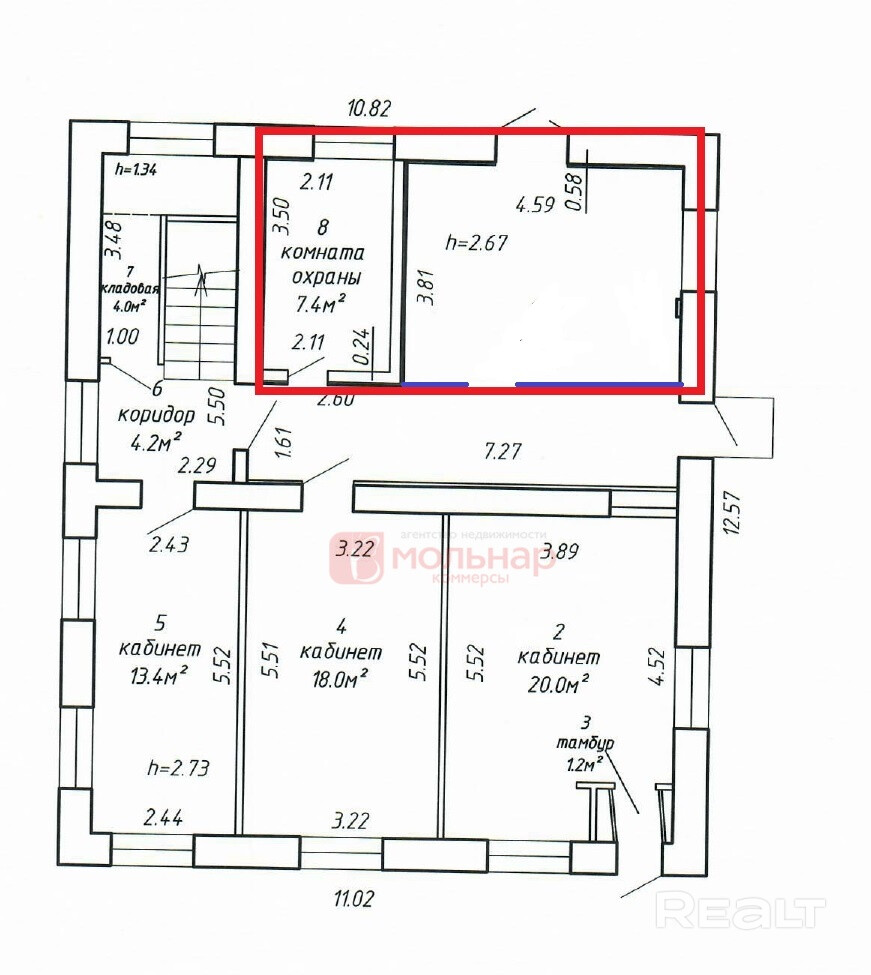 Помещение состоит из двух кабинетов 7,4 и 17,48м2, Здание офиса расположено на территории с активной коммерческой деятельностью, что способствует развитию деловых связей. Хороший ремонт. Отопление электрическое. Отдельный вход. Рядом остановки общественного транспорта и две парковки. Интернет, телефон, предоставляется юридический адрес.