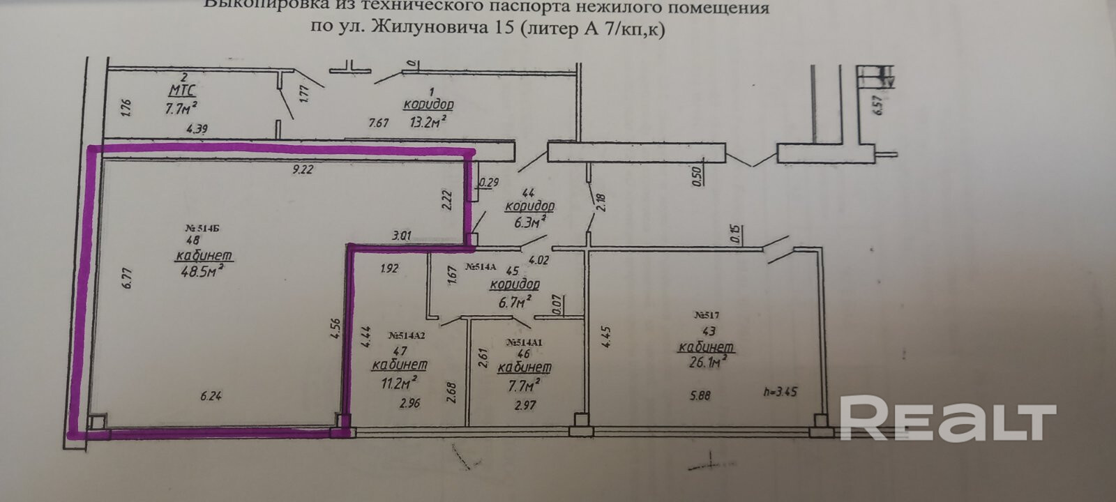 Сдача в аренду изолированного помещения для транспортно-экспедиционной деятельности, размещения сотрудников, расположенного по адресу: г. Минск, ул. Жилуновича, 15, номер помещения 514б, общей площадью 48,5 кв.м. Арендная плата за помещение в месяц составляет 43,6500 базовых арендных величин или 819,31 белорусских рублей.