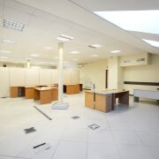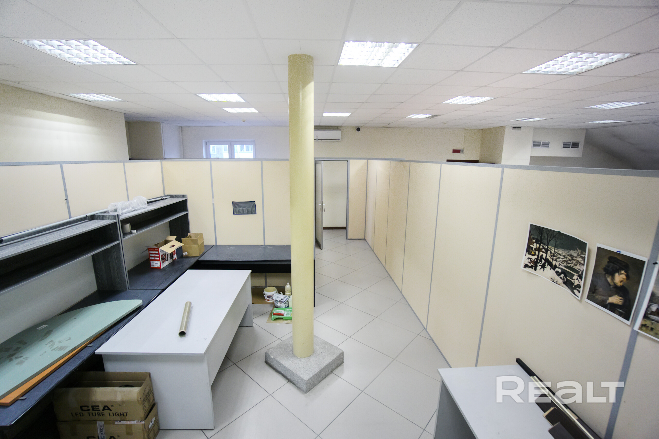 Основная площадь офисного помещения разбита на зоны легкоразборными перегородками.