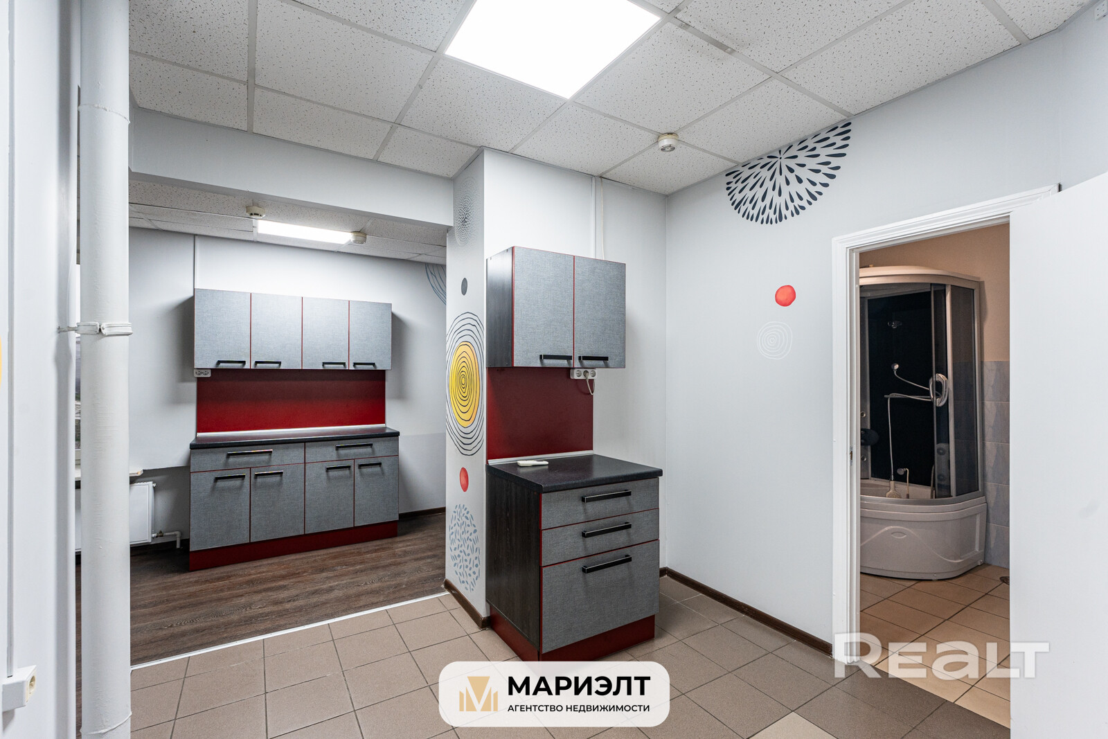 Центр города, оживленная локация. Рядом огромное количество различных магазинов, салонов, пунктов общественного питания, кафе и т.д. В пешей доступности станция метро «Площадь Якуба Коласа» и прямо перед зданием остановки общественного транспорта.