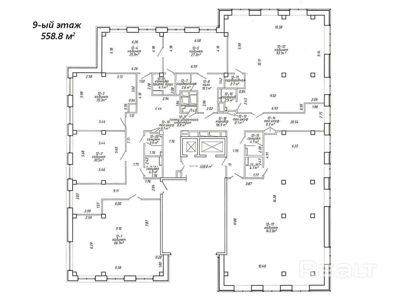 9 этаж - 558.8 кв.м.