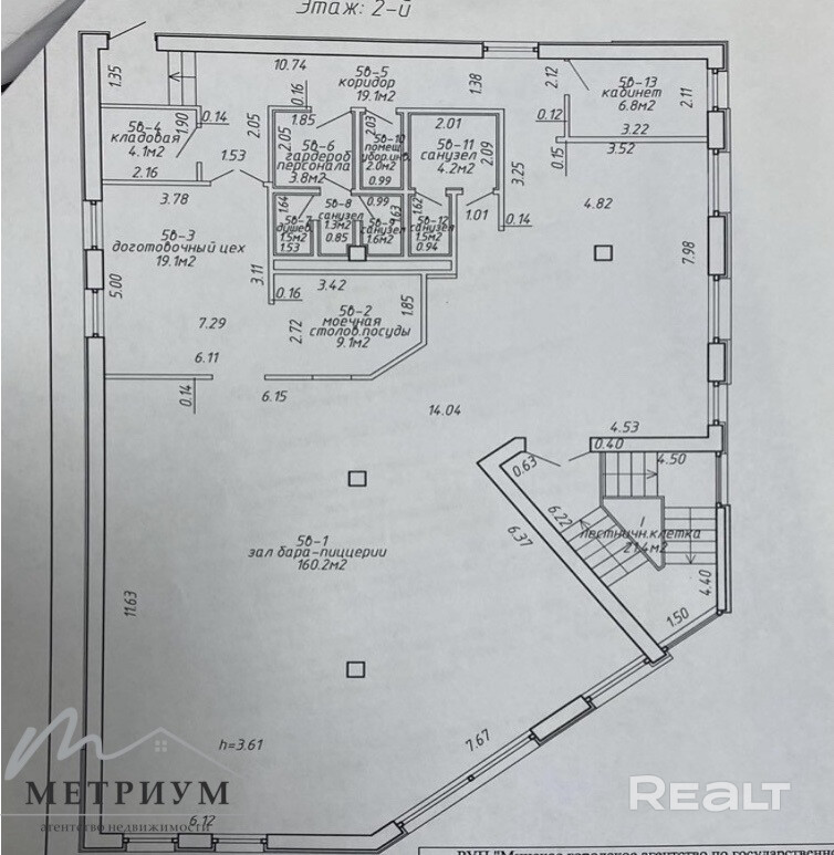 Многофункциональное помещение 269,8 кв.м. располагается на втором этаже с отдельным входом с первого этажа. Строение расположено на первой линии по улице Мирошниченко, 3.