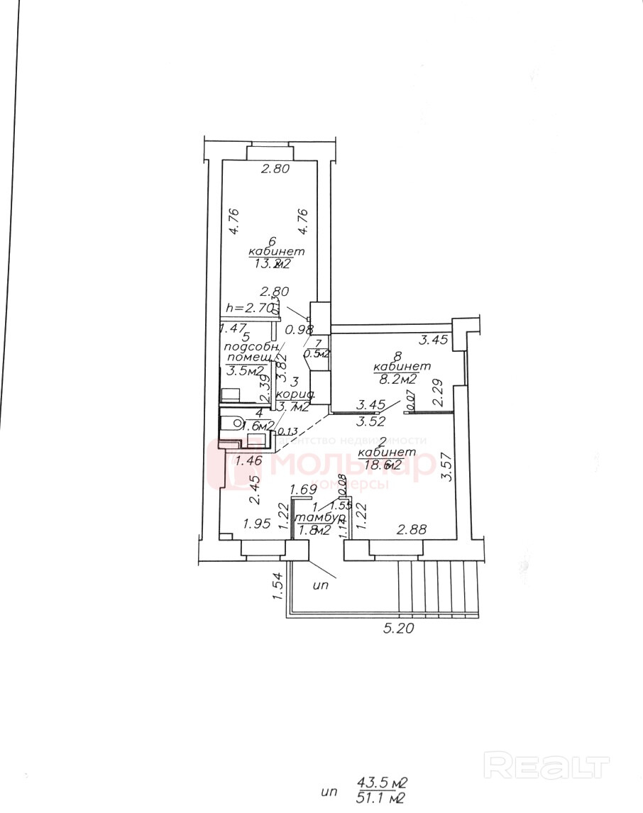 Аренда офисного помещения общей площадью 51,1м2 по улице Киселева, дом 16