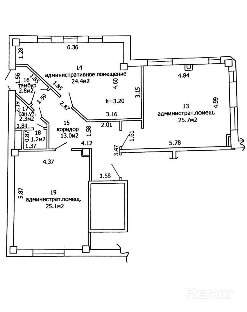 Офис 94.5 м² с 3 кабинетами и кладовой по адресу Быховская 37