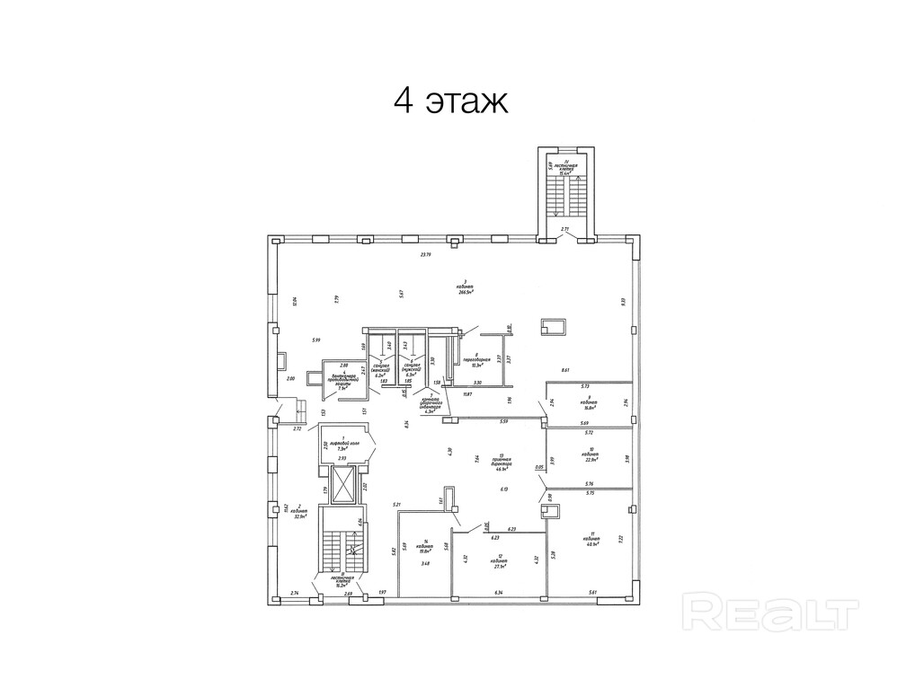 Площадь: 545,3 м2 (4 этаж, кабинетная планировка + стеклянные перегородки)