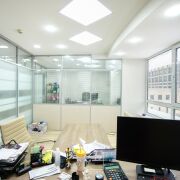 Разделено на 3 кабинета, отличный ремонт, оптоволоконная сеть, круглосуточный доступ, система кондиционирования, парковка рядом со зданием.