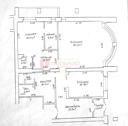 Помещение состоит из 4 кабинетов, двух санузлов и столовой.