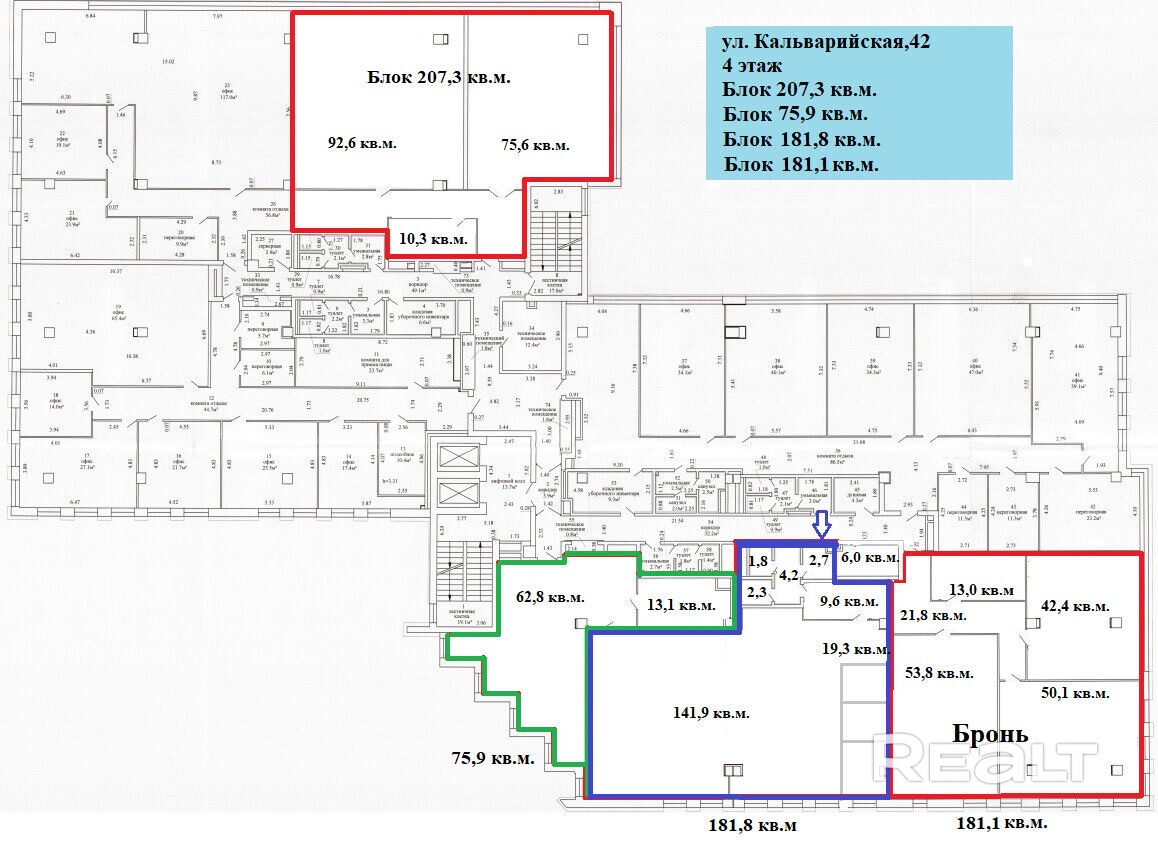 Офисный блок (444,8 м2) в бизнес-центе "Каскад-Альфа", по адресу: ул. Кальварийская, 42.С возможностью разделить на 3 части: