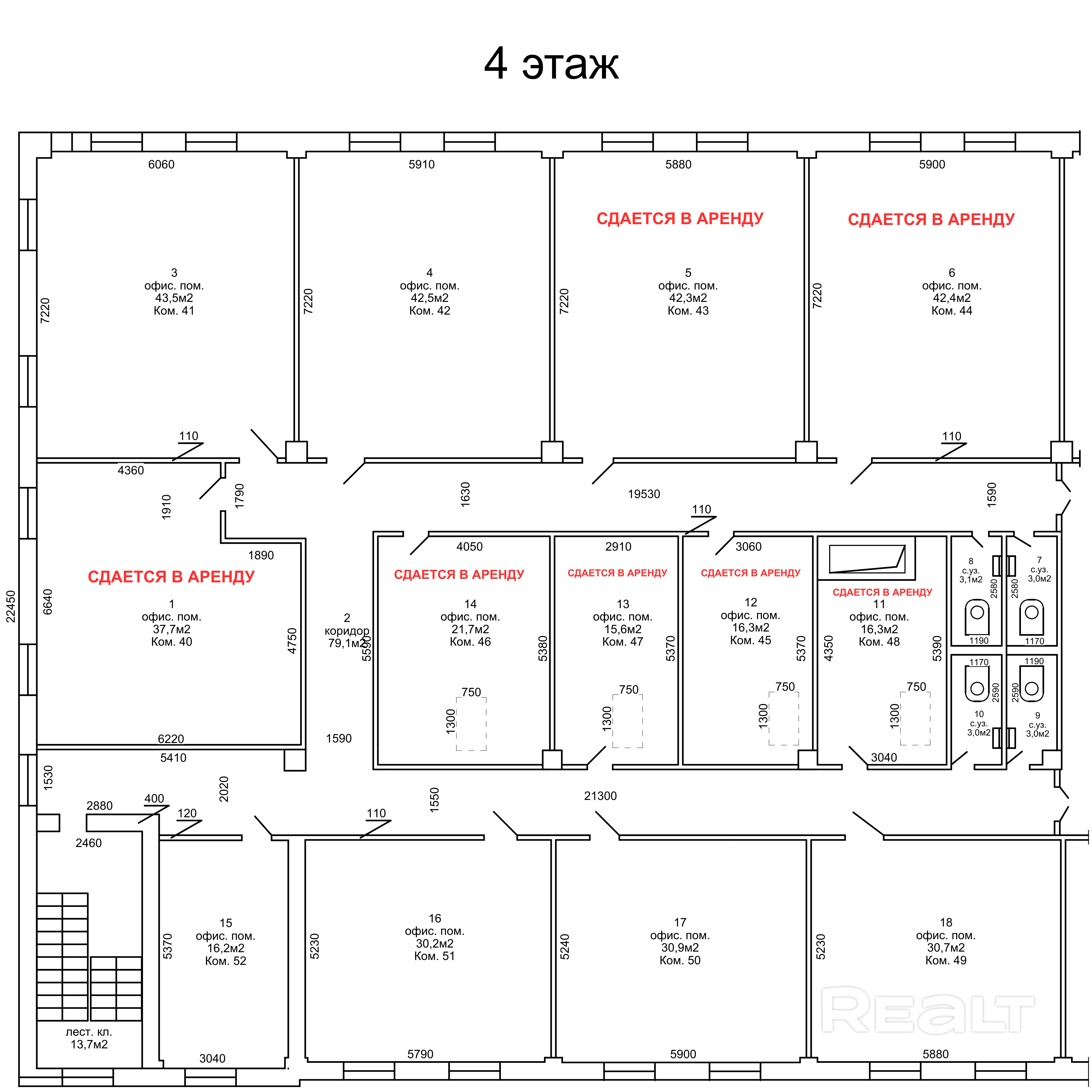 Сдаются 7 помещений в аренду (от собственника), метраж от 15,6 м2 до 42.4 м2. Удобное расположение рядом с МКАД. Имеются все коммуникации, санузлы, горячая вода. Кабинетная планировка, офисный ремонт, помещение без мебели. Доступ в здание — круглосуточный, имеется бесплатная парковка. Рядом крупный торговый центр "Евроопт".
