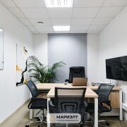 Офис кабинетного формата находится на 3-м этаже общей площадью - 985,7 м2 + помещение кухни - 67 м2 и склада - 81,8 м2 расположенные на -1-м этаже в Бизнес-центра.