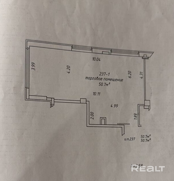Торговое помещение общей площадью - 50,7 м2, располагается на 2-м этаже .