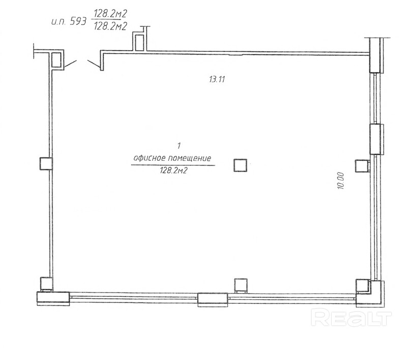 Помещение сочетает в себе формат открытого пространства с возможностью установки дополнительных перегородок. Высокая степень естественного освещения.