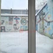 В кабинете выполнен ремонт, высокие потолки, окна во двор на стену.