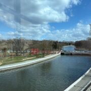 Офис состоит из зоны ресепшна, оборудованной комнатой приема пищи, просторной рабочей зоны open space, двух изолированных кабинетов с панорамными окнами и видом на реку.