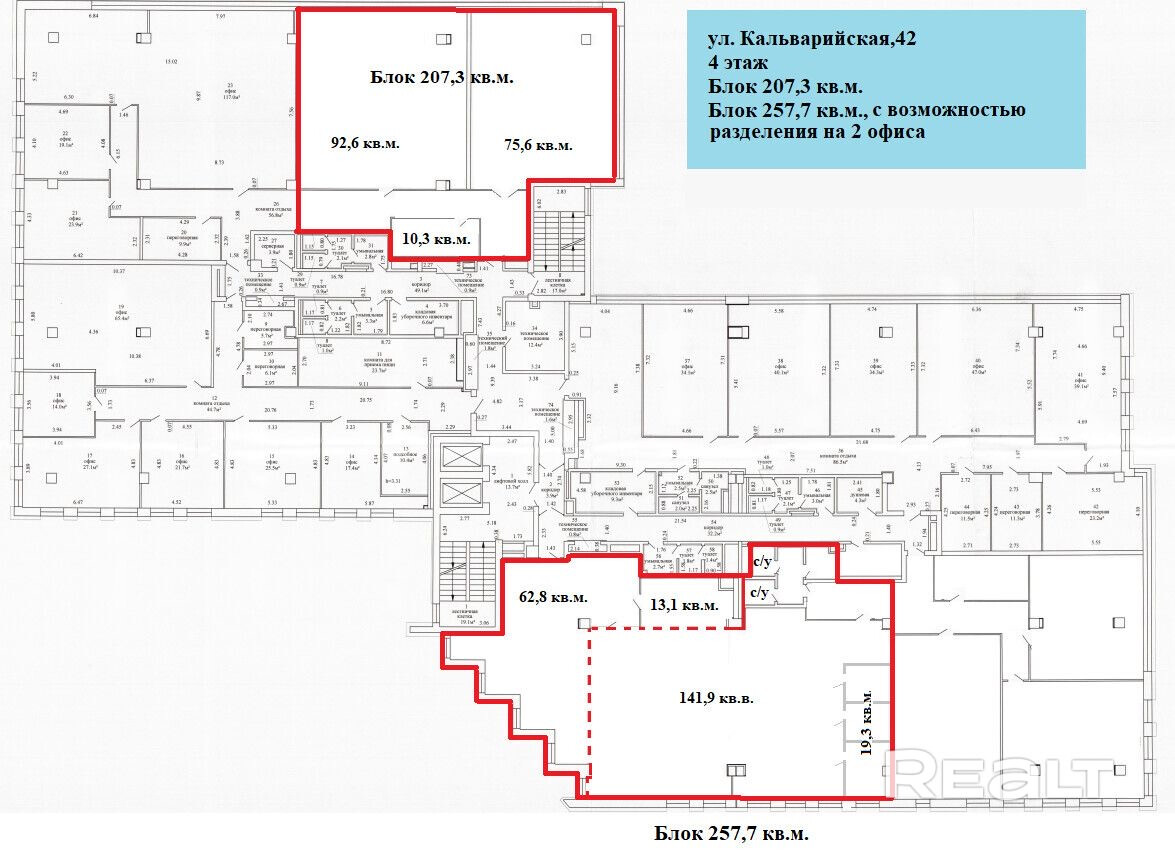 Возможна аренда блока 75,9 м2, 141,9 м2 , 257,7 м2.