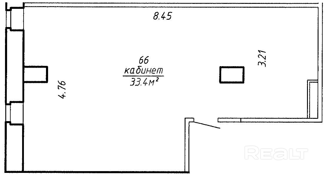 Площадь: 33,4 м2. Планировка: open-space. Этаж 2.