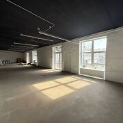 Аренда помещений площадью 574,55 м.кв. на ул. Старовиленская, 100. Что рядом: Комаровский рынок, пл. Я. Коласа, ул. Хоружей, ул. Богдановича. Отделка внутренняя — белые стены под кирпич, бетонный пол, современные фасадные решения — светлый фасад, высокие окна (3-4 м.), новые стеклопакеты с черными рамами, лофт-стиль, очень светлые и просторные помещения (открытая планировка, окна с двух сторон практически в пол)