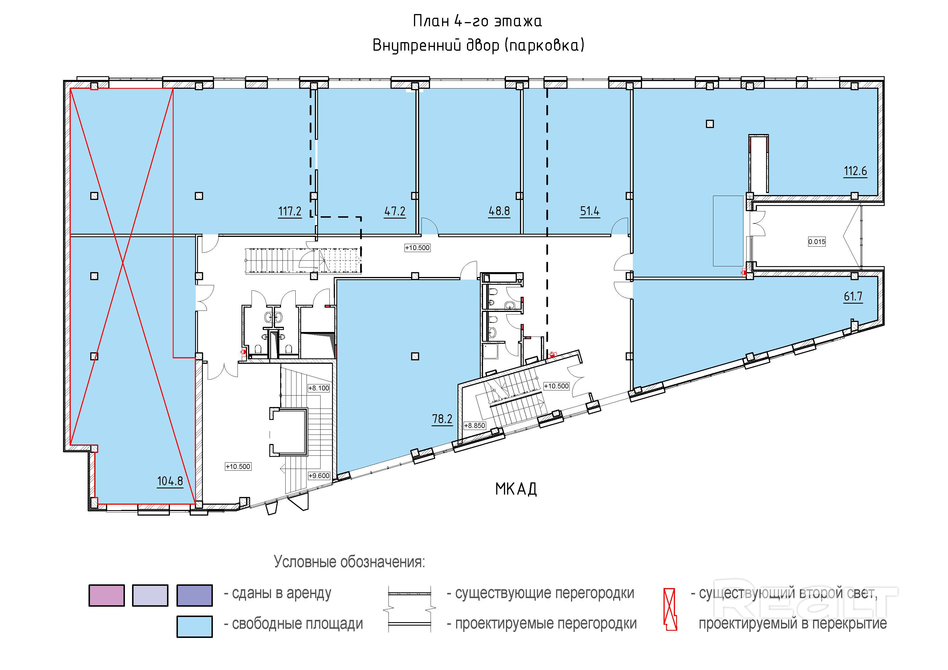 4 этаж: офисные помещения - 50,7 м2; 51,8 м2; 63,9 м2.