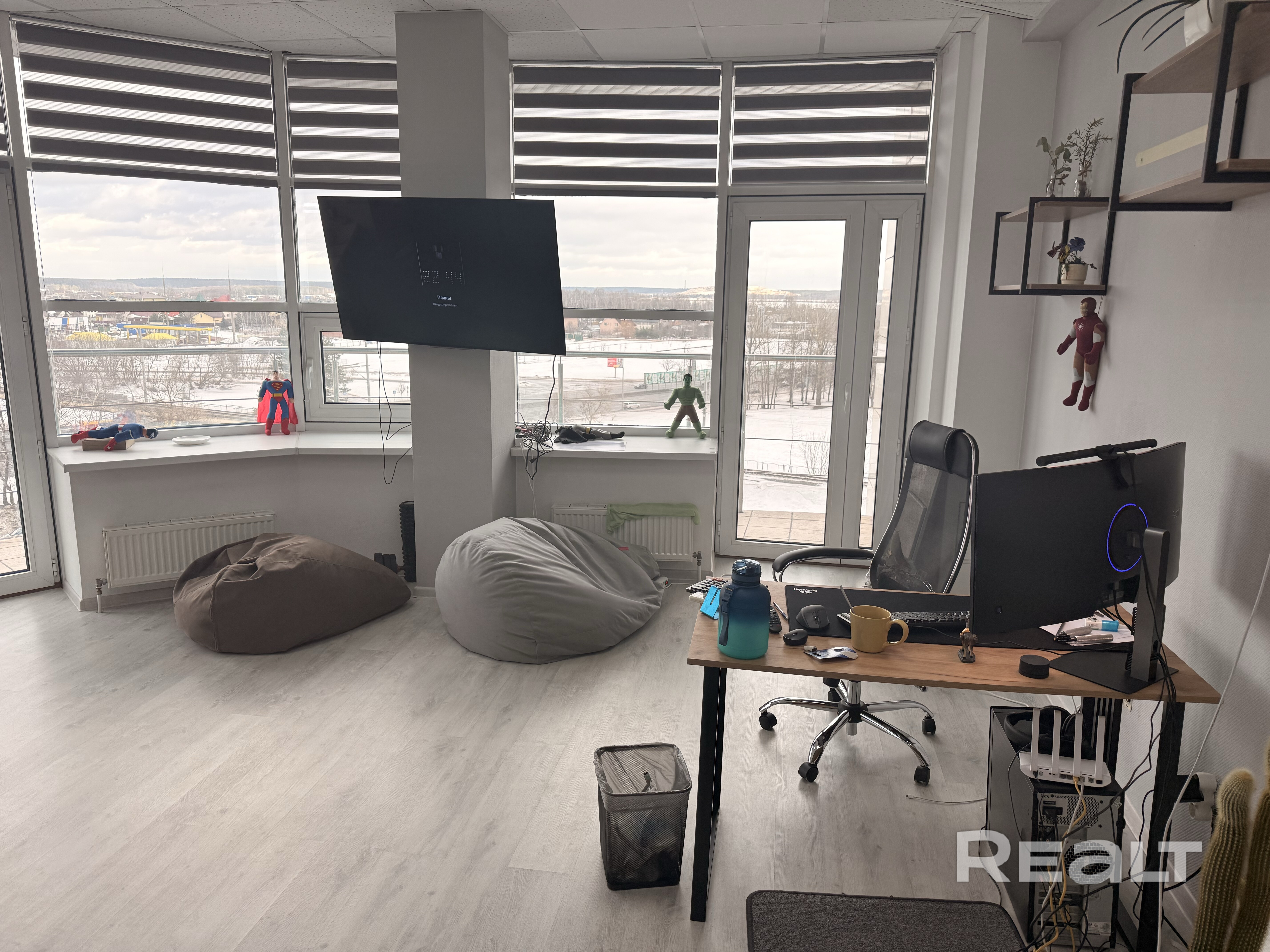 Балкон в вашем распоряжении, доступ к нему только у вас. Сдается минимум на год, обеспечением будет 3 месячных депозита. Только очень долгосрочная аренда. В стоимость $370 входит (можно без них, тогда за $300): - Телевизор - Столы, 3 шт. - Стулья офисные, 3 шт. (с опорами для спины) - Обогреватель - Кресла мешки, 3 шт. - Большой шкаф (на фото) - Кондиционер - и все остальное, что видно на фото. Пишите в ТГ, есть видео офиса. Могу рассмотреть продажу, от $35k. Площадь указана без балкона