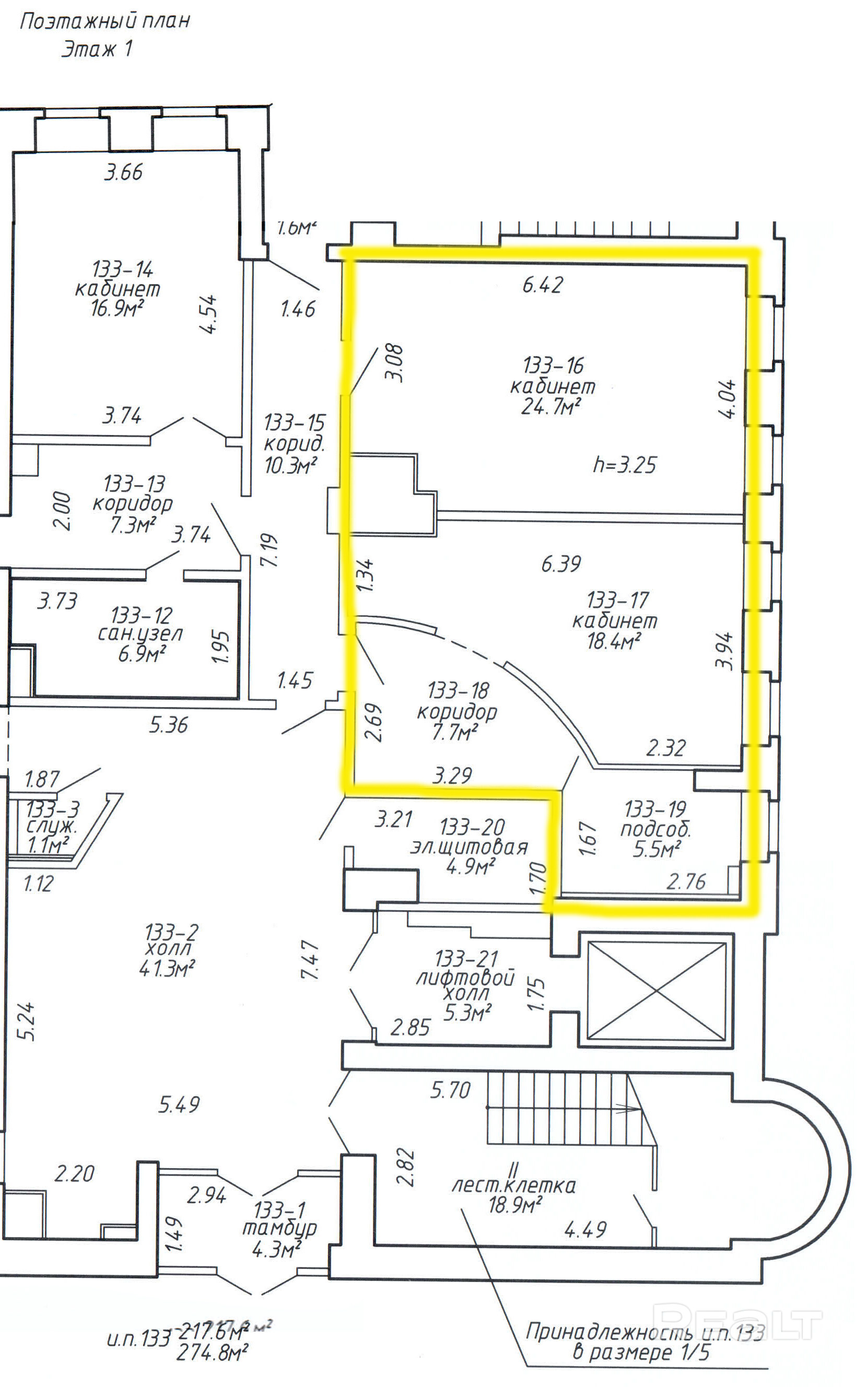 Два смежных кабинета с хорошим ремонтом на 1-м этаже. Площадь 24,7 и 31,6 кв.м