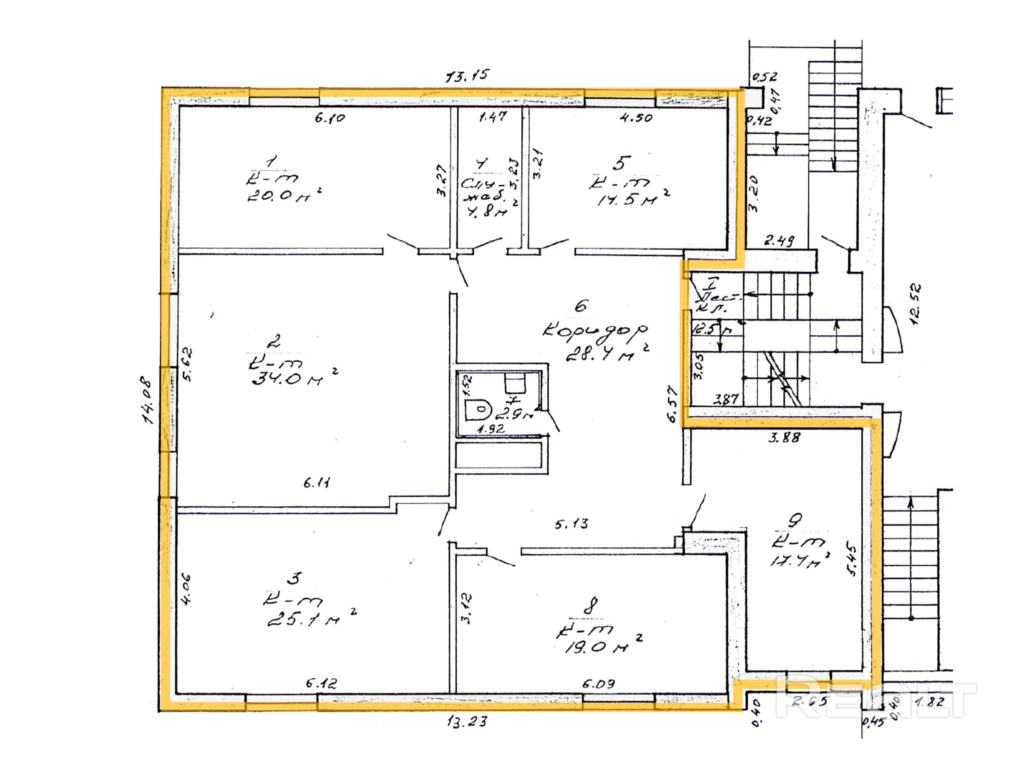 Кабинетная планировка: 6 кабинетов с естественным освещением, комната приема пищи, собственный санузел. Есть возможность организации зоны ресепшн.