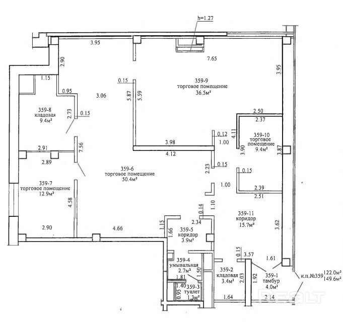 Помещение общей площадью 155,1 м2 с отделкой располагается на стилобате на 2 этаже многоэтажного жилого дома на проспекте Победителей, 129.