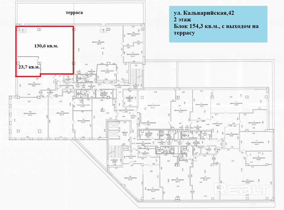 Офисное помещение 154,3 м2, на втором этаже БЦ "Каскад Альфа". Ул. Кальварийская, 42.