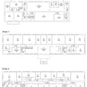 · Входы и коммуникации: предусмотрено несколько отдельных входов, что позволяет организовать удобную логистику и разделить потоки сотрудников и посетителей. На каждом этаже оборудованы санузлы и кухонные зоны, в цокольной части - душевая.