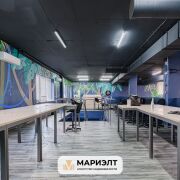 Сочетание открытого пространства с высокими потолками (6,5 м) и отдельных кабинетов позволяет объединить административную и активную деятельность.