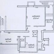Состоит из: 3-4 комнат (коридор площадью 19,5 кв.м. можно использовать как дополнительную отдельную комнату) + 1 сан.узел + 2 кладовые.