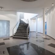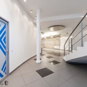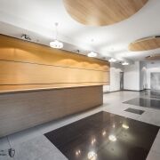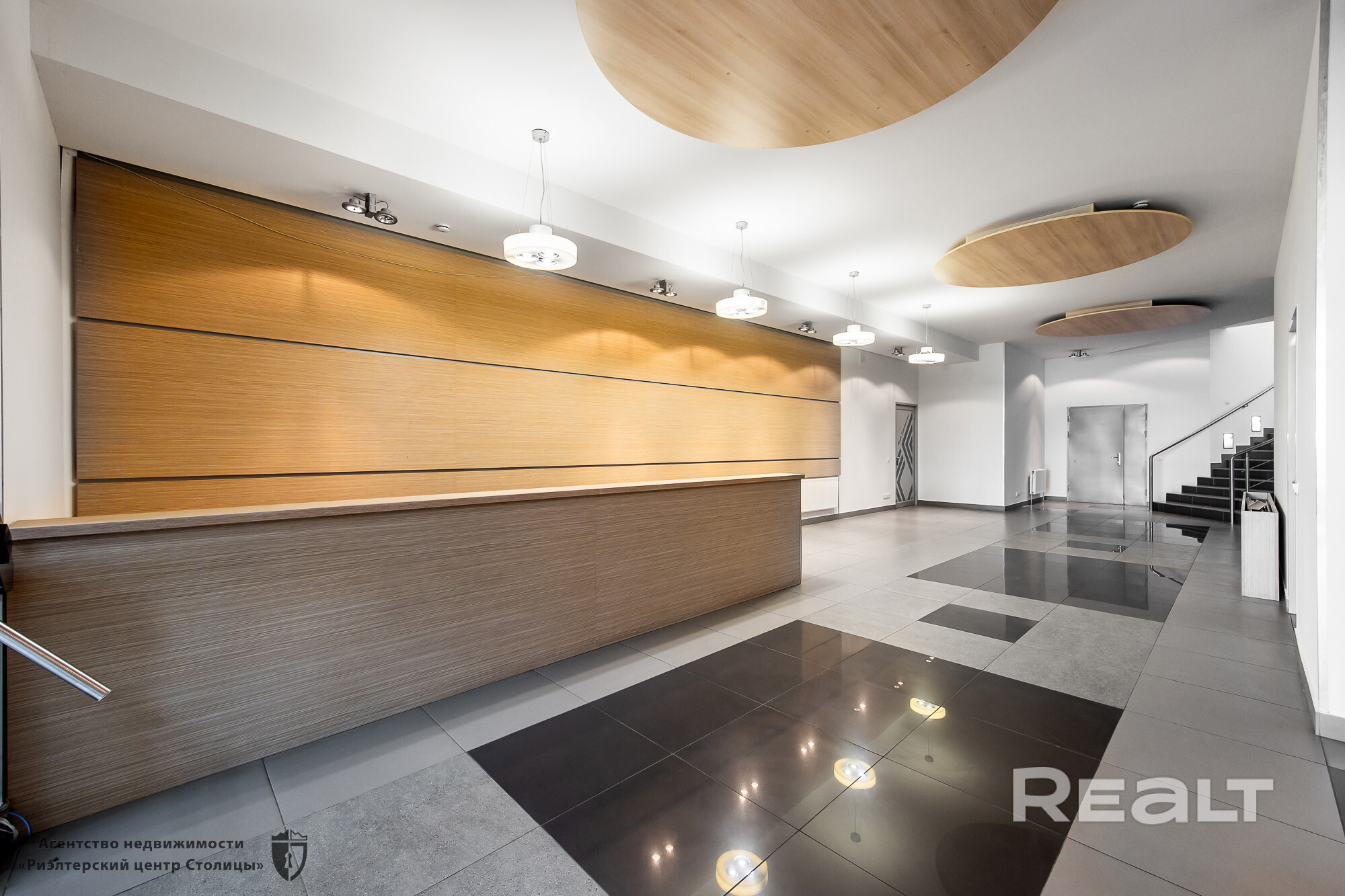 - на первом этаже расположены: зона ресепшен, группа санузлов, комната для организации мини-кухни и лаунж зоны, архивная для документов, кладовая (душевая), гардеробная. Дизайнерская отделка, видеонаблюдение.