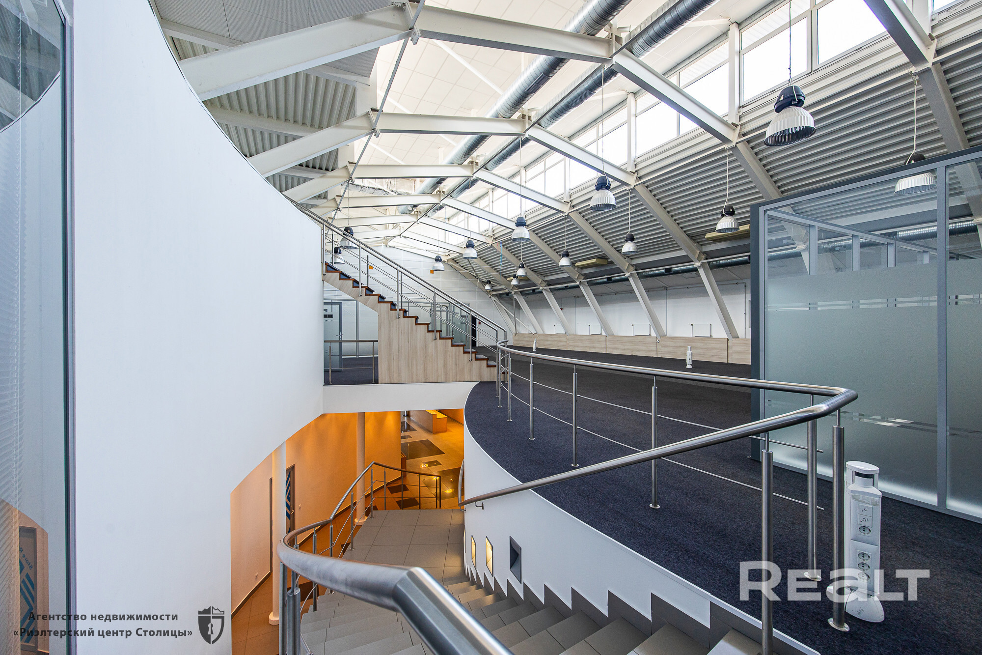 - на втором этаже расположены: open-space, кабинеты, переговорные комнаты и др. Проведены телефонные линии, оптоволоконные сети. Установлена система мультизонального кондиционирования, приточно-вытяжная вентиляция, выполнена разводка к каждому рабочему месту компьютерной сети и интернета (оптоволокно).