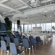 Стильный зал с панорамными окнами и свободной планировкой на 4 этаже бизнес-центра FUTURIS.
