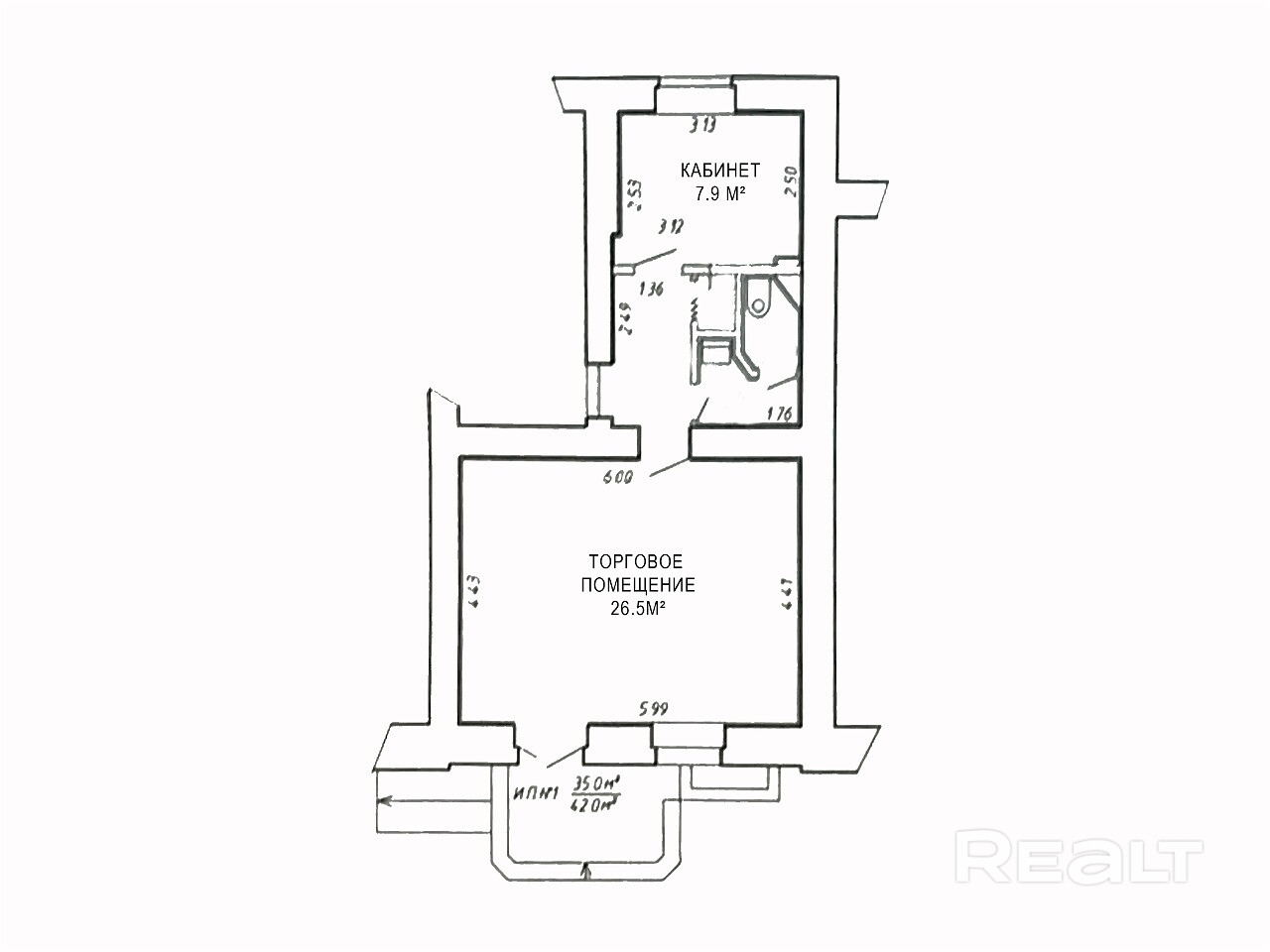 Помещение состоит из двух комнат, коридора, небольшого подсобного помещения и санзула.