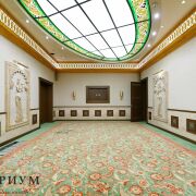 • Просторные залы, высокие потолки, возможность зонирования пространства.