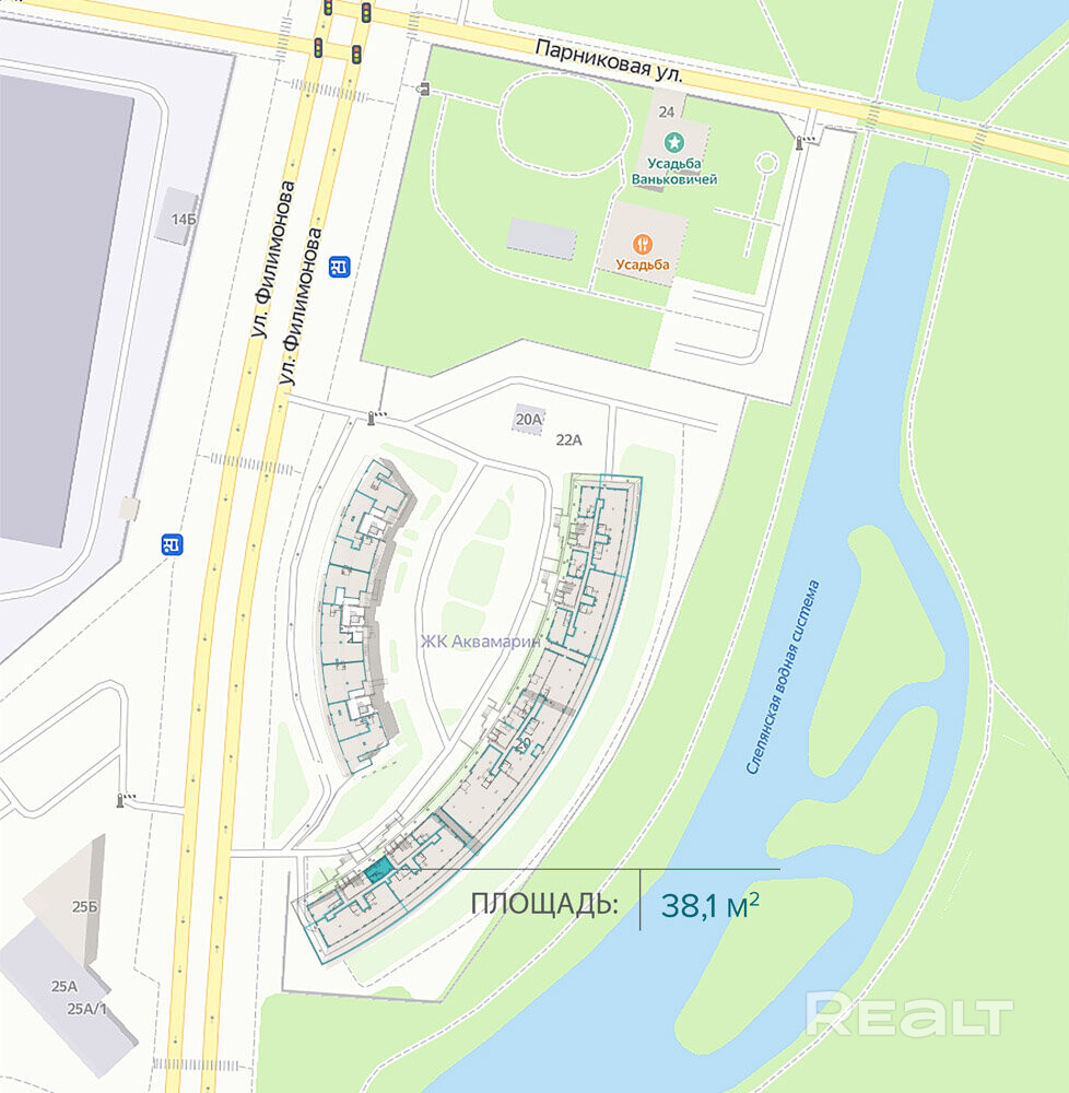 ЖК «Аквамарин» находится в престижном районе столицы – на живописной и обустроенной набережной Слепянского водохранилища по ул. Филимонова и имеет отличное транспортное сообщение. Комплекс расположен в 800 метрах от пр. Независимости и в 3,5 километрах от МКАД. Рядом находятся две станции метро: «Восток» и «Московская». В непосредственной близости от комплекса есть остановки наземных видов транспорта.