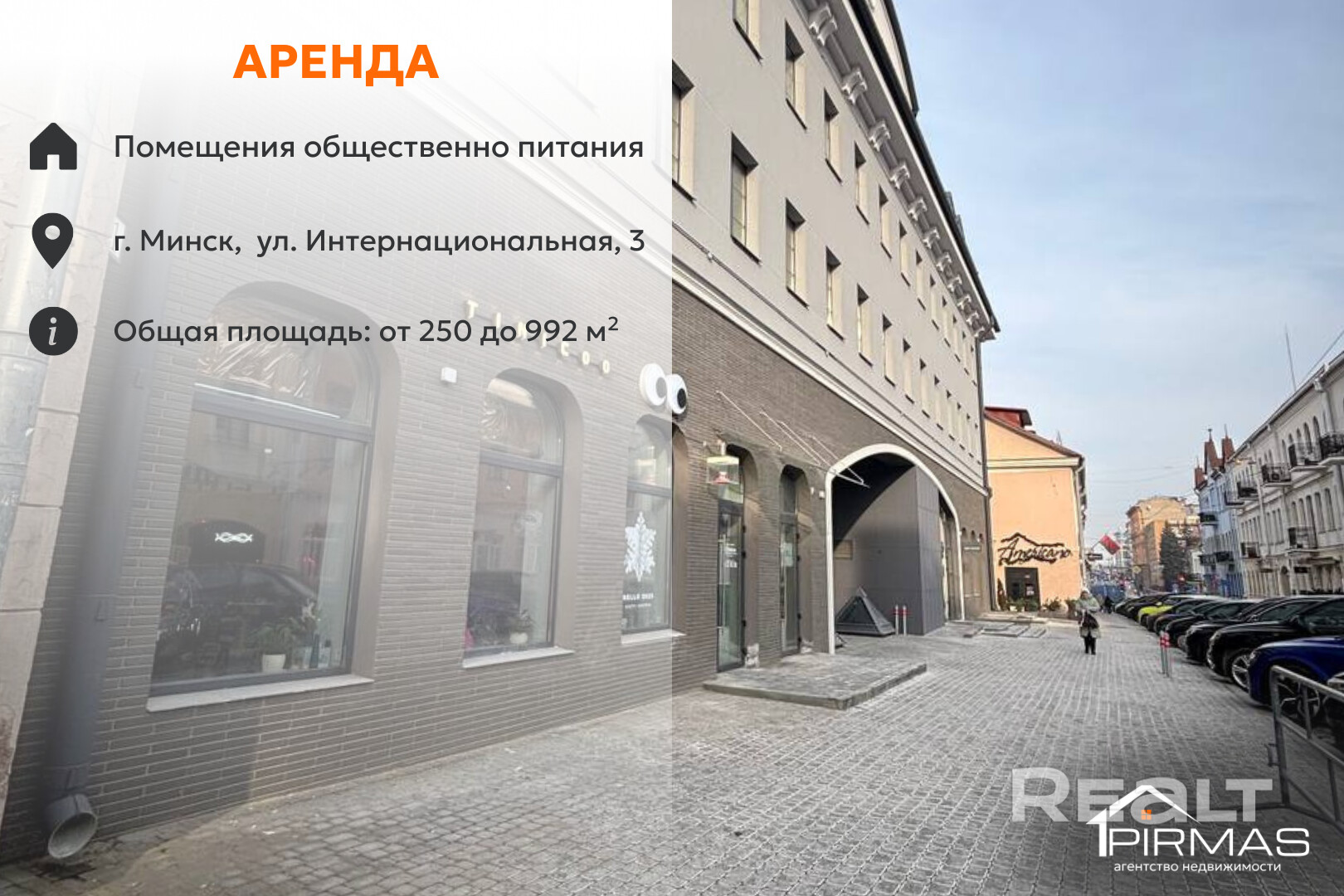 ✅Предлагаем Вам уникальную возможность арендовать просторное коммерческое помещение, идеально подходящее для организации бара, кафе или ресторана, в самом сердце Минска по адресу: улица Интернациональная, дом 3.