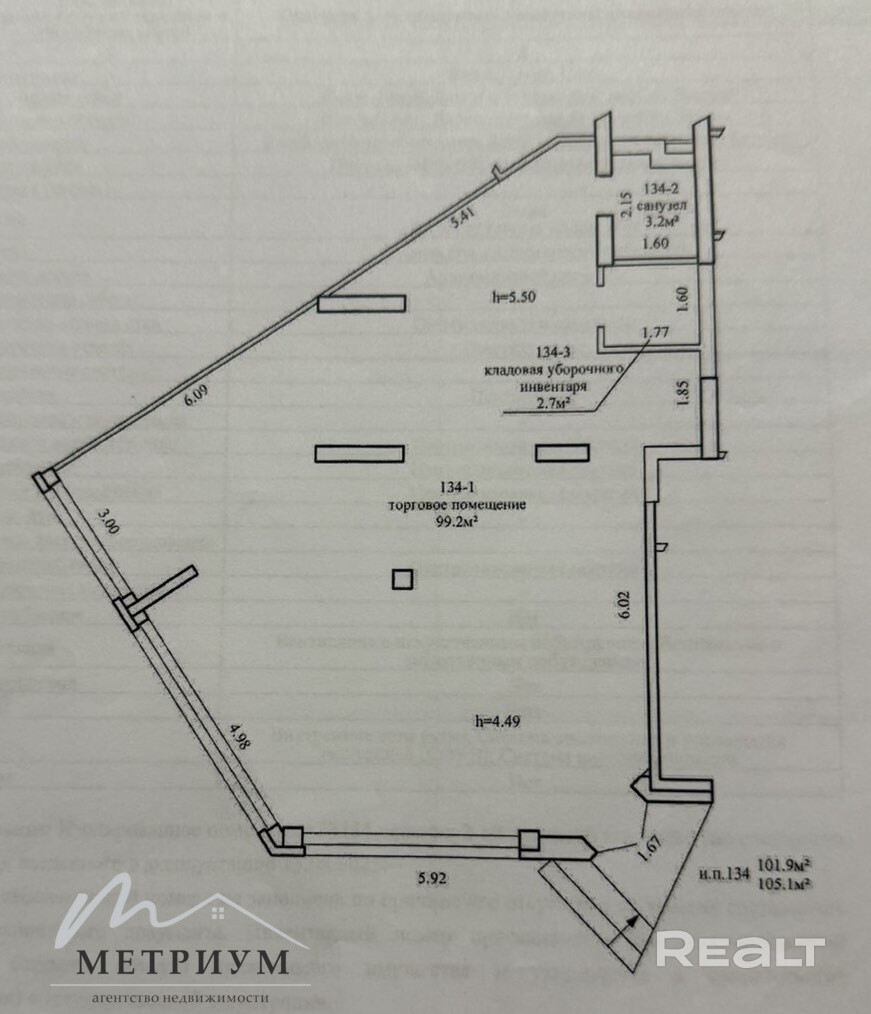 • Санузлы: в помещении предусмотрены два санузла, что удобно как для сотрудников, так и для клиентов.