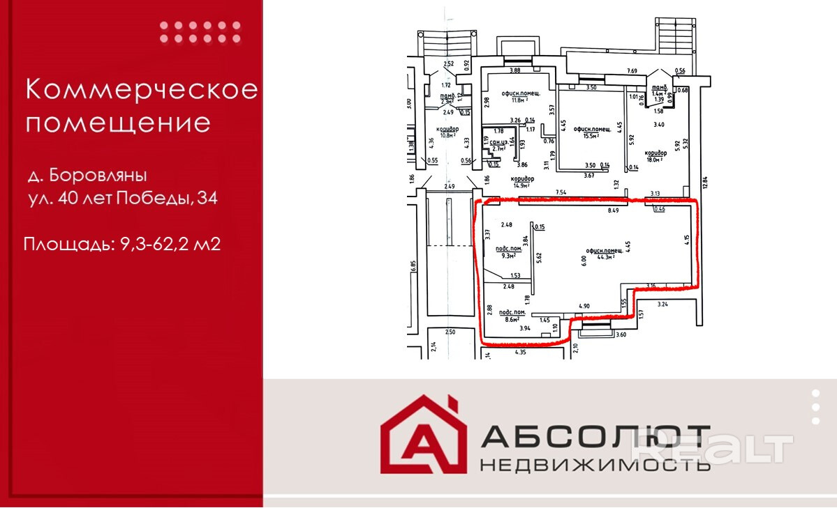 Аренда помещения от 9,3-62,2 м2 в д. Боровляны по ул. 40 лет Победы, 34