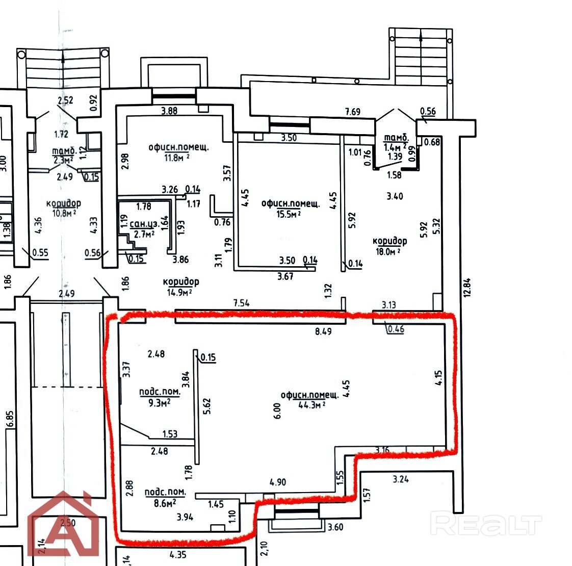 - помещение площадью – 9,3-62,2 м2,