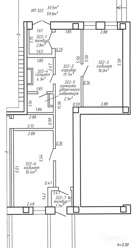 Помещение кабинетного формата общей площадью – 59.8 м2, располагается на 1-м этаже жилого дома по адресу, пр-т Газеты Правда, 1.