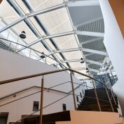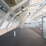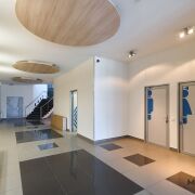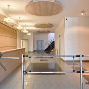 Офис Open-space формата – 929,9 м2: 1-й этаж – 340,5 м2 (зона ресепшена, кухня, сан. узел, гардероб, переговорная); 2-й этаж – 589,4 м2 (оpen-space, 6 отделенных перегородками помещений).