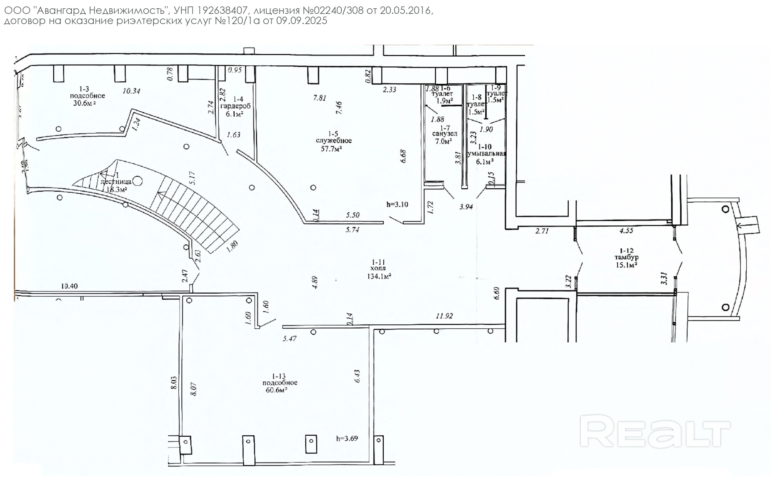 - высота потолков 3.1-3.6 м и 7.3 м (второй свет;)