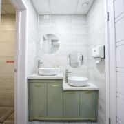 Расположено на первом этаже жилого дома. Отдельный вход, свежий ремонт, собственный санузел, кондиционеры, естественное освещение.