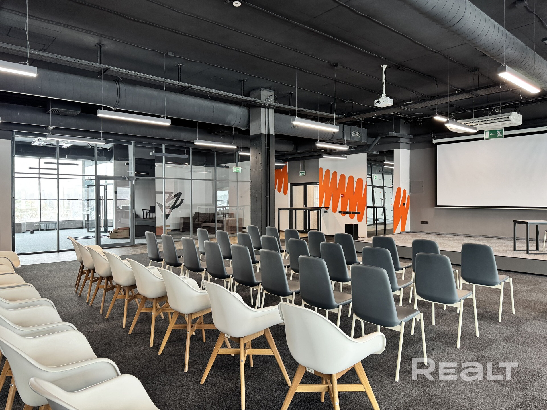Стильный зал с панорамными окнами и свободной планировкой на 2 этаже бизнес-центра FUTURIS.