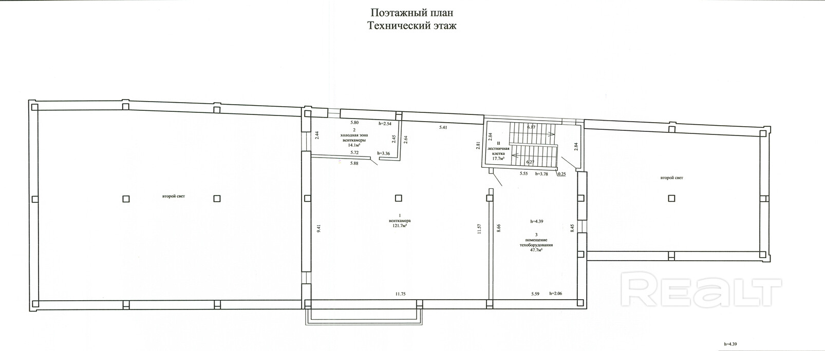 высота потолка 3,47м ; общая площадь этажа 500 м2