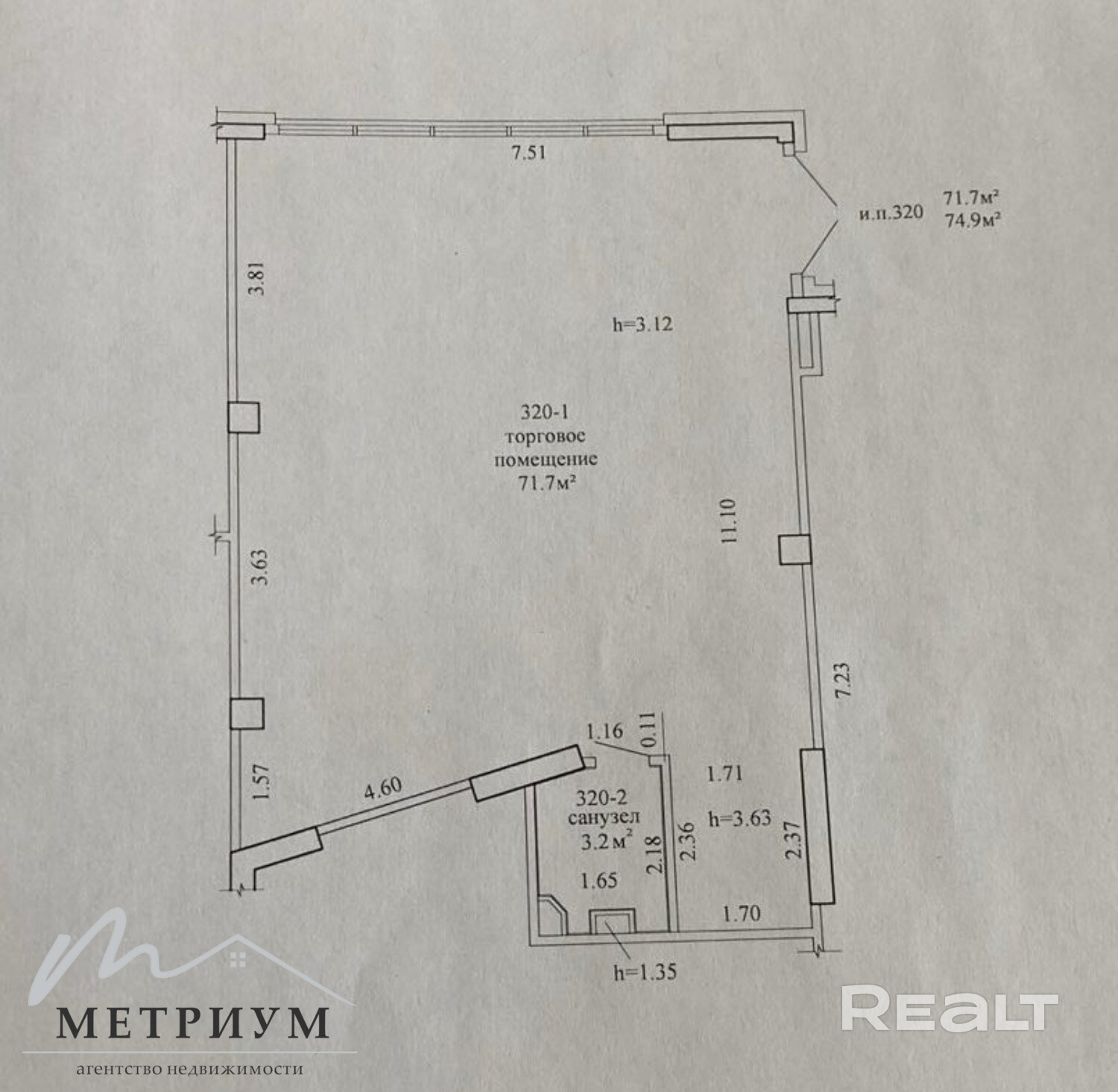 Торговое помещение по ул. Алферова 12, площадью 74,9 кв